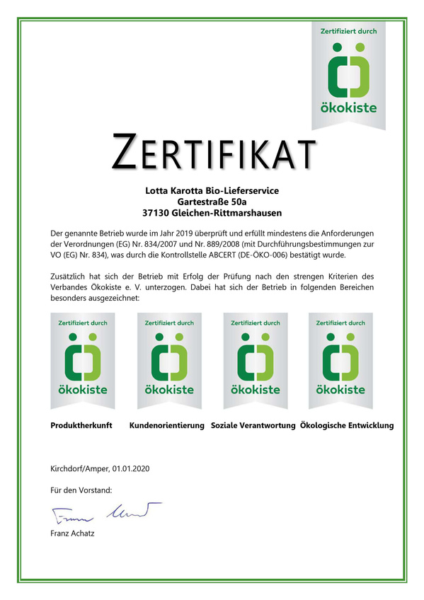 Seit 2008 verpflichten sich freiwillig alle Mitglieder des Verbands Ökokiste e.V. dazu, nach selbst auferlegten, strengen Kriterien zu arbeiten. Diese Kriterien werden von den EG-Bio-Kontrollstellen als unabhängigen und staatlich anerkannten Prüfstellen auf ihre Einhaltung hin kontrolliert.