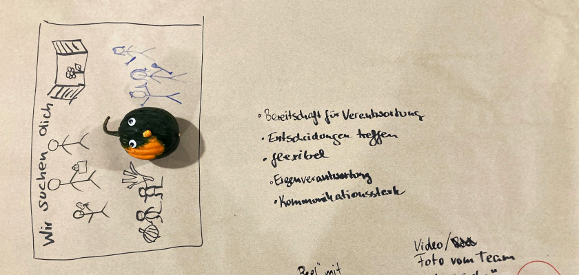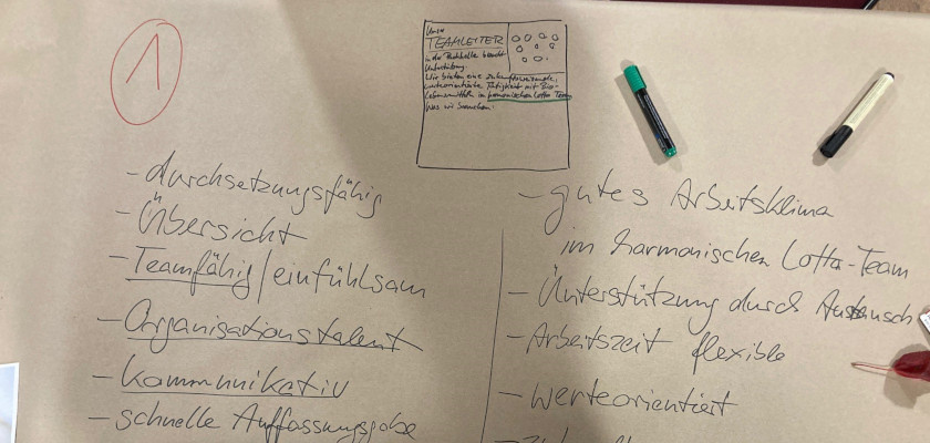 Um ein schnelles Profil für einen Betrieb zu erstellen, sammelten wir am Beispiel von Lotta mit den Teilnehmenden alles, was während der Führung markant auffiel und für den Betrieb charakteristisch zu sein scheint. Es kamen sicher 100 Begriffe zusammen! Aus denen fassten wir Überschriften zusammen. Dabei kam heraus: Gute Arbeitsumgebung - Dynamisch, kraftvoll, agil - Arbeit mit Sinn / gelebte Werte. Aus diesen Schlagworten und dem Feedback ist es nun möglich, eine passende Anzeige zu schreiben. Das haben wir dann auch noch gemacht. Dabei war schnell klar: lieber mal kreativ und witzig, als klassisch.