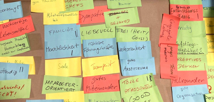 Dafür sei es gut, erklärten uns Solvej und Manuel, sich erst mal darüber klar zu werden, was den eigenen Betrieb zu einem attraktiven Arbeitsplatz macht. Wer sind wir? -> Wen suchen wir?