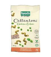 Die Byodo Cellentani Grüne Erbse aus 100% erlesenen Bio-Zutaten sind dank ihres hohen Protein- und Ballaststoff-Gehalts perfekt geeignet für eine ausgewogene oder glutenfreie Ernährung. Sie sorgen mit ihrem frischen und leicht süßlichen Geschmack für einen abwechslungsreichen Pasta-Genuss.Eine schiefe Einstellung der Nudelpresse einer Pastificio in Parma erwies sich in den 70-ern als die Geburtsstunde dieser fröhlich aufgedrehten Form. Sofort wurde diese neue Nudeart als Cellentani nach einemdamals beliebten Sänger benannt.