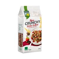 (Erdbeerstücke*, schwarze Johannisbeeren*), Zartbitterschokolade* 2% (Kakaomasse*, Rohrzucker*, Kakaobutter*, Emulgator Sonnenblumen-Lecithine*), stark entölter Kakao* 2%,
