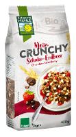 HAFERvollkornflocken* 15%, Früchte* gefriergetrocknet 3% in veränderlichen Gewichtsanteilen (Erdbeerstücke*, schwarze Johannisbeeren*), Zartbitterschokolade* 2% (Kakaomasse*, Rohrohrzucker*,