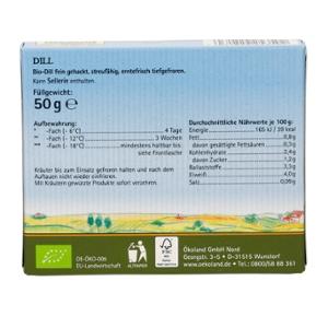 Aufbewahrt wird Dill am besten nach schneller Abkühlung in einem Temperaturbereich von -1 bis 0 °C und einer relativen Luftfeuchte von 95 %. Ist Dill zusätzlich in Folie eingepackt, hält er