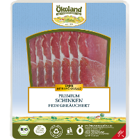 Über 4 Monate im handwerklichen Naturreifeverfahren ohne Nitritpökelsalz gereift und anschließend schonend geräuchert, entwickelt der Ökoland Premium Schinken seinen unverfälschten Geschmack. Nur bester Schweineschinken wird hierfür verarbeitet, alles unter strengen Qualitätskontrollen. Bioland-zertifiziert. Ohne Nitritpökelsalz und andere Zusatzstoffe hergestellt. Von Natur aus glutenfrei, laktosefrei, natürliche Hefenbildung durch Fermentation. Innovative Verpackung aus Polypropylen (PP) bewirkt hohe Recyclebarkeit für die Kreislaufwirtschaft von Verpackungsmaterialien.