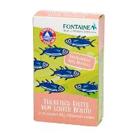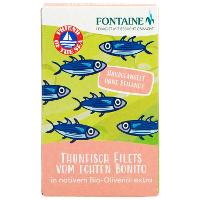 Fontaine Echter wird nach den Richtlinien der Nachhaltigkeit einzeln mit der Angelrute aus dem Wasser gezogen. Nach dem Handangelfang folgen die verantwortungsvolle Verarbeitung und die Verfeinerung mit besten Bio-Zutaten. Diese Vollkonserve enthält neben dem Thunfisch ausschließlich Meersalz  und mildes spanisches Bio-Olivenöl extra vergine.