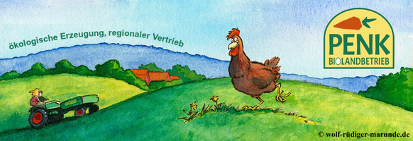 Jörge Penk hat seinen stetig wachsenden Betrieb von Anfang an ökologisch bewirtschaftet und war ein Pionier was die Hühnerhaltung in mobiler Weidehaltung betrifft. Seit einigen Jahren können unsere Kund*innen in regelmäßigen Abständen frische Hähnchen aus dem kleinen Dorf Großenrode nahe Moringen, nördlich von Göttingen beziehen.