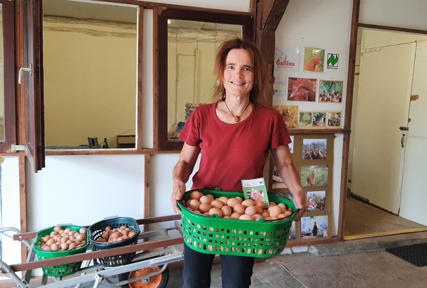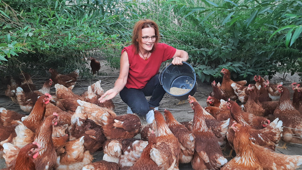 Die 9000m2 große Auslauffläche ist das Zuhause von ca. 1900 Legehennen in Ahlbershausen nahe Uslar im schönen Solling. Marlene Staab hat den Stall 1987 mit jungen 23 Jahren gepachtet und seit je her Wert auf Futter ohne Zusatzstoffe und auf Auslaufhaltung gelegt. In den 90er Jahren stellte sie ihren Betrieb auch offiziell auf die ökologische Hühnerhaltung um und gewann viele Bioläden und Wochenmarktbeschicker in Göttingen als Kunden, unter anderem auch Lotta Karotta.