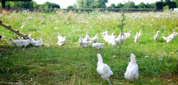 Wir bieten euch die Zweinutzung-Eier und Mobilstall-Eier, sowie regelmäßig auch Hähnchen von Landliesel als Aktion für eure Ökokiste an.