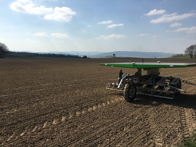 Unterstützt wird die Familie bei ihrer Arbeit durch einen solarbetriebenen Feldroboter, einem FarmDroid, der unter anderem die Rote Bete aussät und hackt.